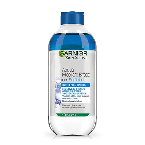میسلار واتر گارنیر دوفاز با ترکیب فاز آبی حاوی عصاره کانتارون آبی و ذرات میسلار، آلودگیها، آرایش ضدآب و سبوم اضافی را مانند آهنربا جذب میکند. این فرآیند پاکسازی عمیق، منافذ پوست را تمیز کرده و از ایجاد جوش جلوگیری مینماید. همچنین موجب کاهش پف و تیرگی زیر چشم، بهبود شادابی پوست میشود. همچنین این میسلار با حذف سبوم اضافی، ظاهری مات به پوست میبخشد و از برق زدن صورت جلوگیری میکند.