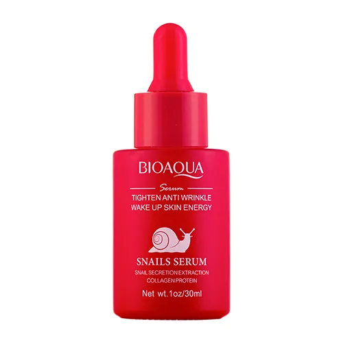 - سرم حلزون (Snail): حاوی عصاره مخاط حلزون، ترمیم کننده، آبرسانی عمیق، مرطوب کننده، تغذیه کننده و افزایش خاصیت ارتجاعی پوست است که پوست را صاف، مرطوب و الاستیک میکند.