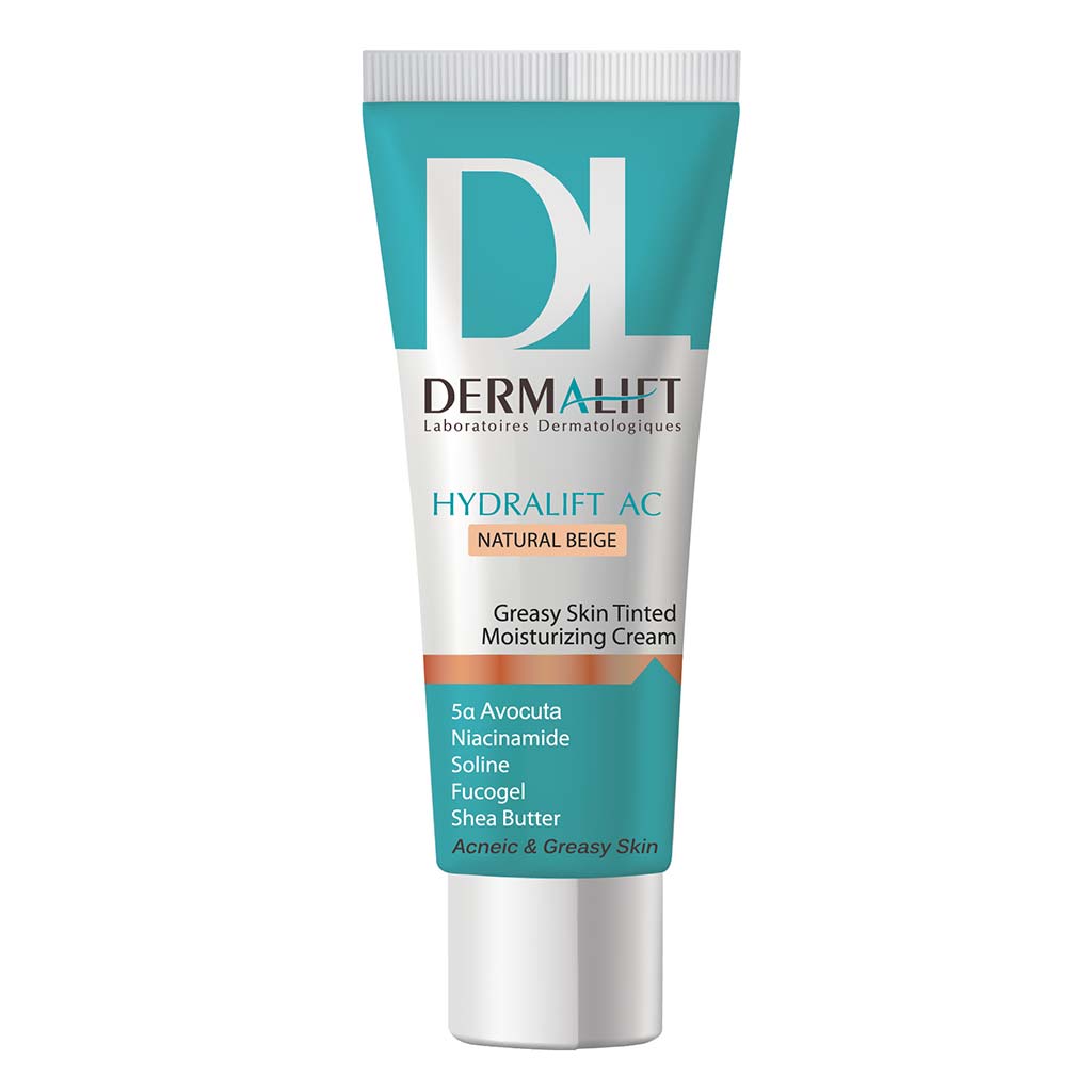 کرم مرطوب کننده رنگی پوست چرب هیدرالیفت ای سی برند درمالیفت بژ طبیعی