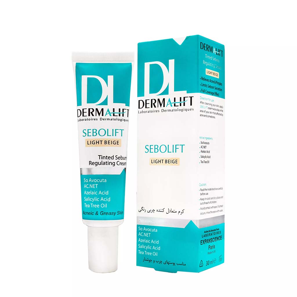 کرم متعادل کننده چربی پوست و ضد جوش رنگی درمالیفت مدل سبولیفت بژ روشن