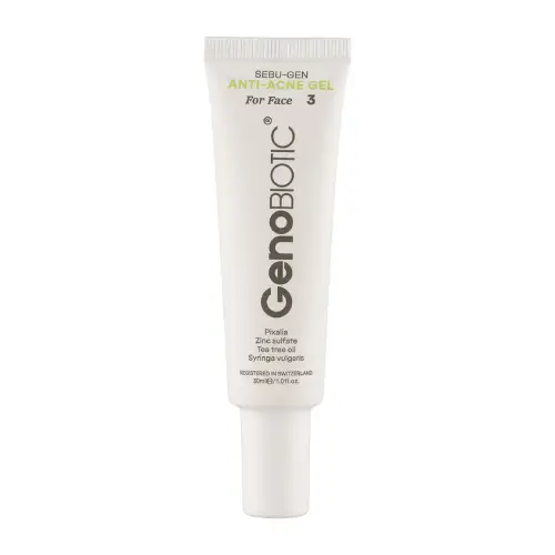 ژل ضدآکنه ژنوبایوتیک با ترکیب پیشرفتهای از عصاره یاس بنفش، اسید سالیسیلیک، روغن درخت چای و روی (Zinc)، با تحریک آنتیبیوتیکهای طبیعی پوست و کنترل چربی، به کاهش سریع جوشهای سرسیاه، سرسفید و التهابی کمک میکند.