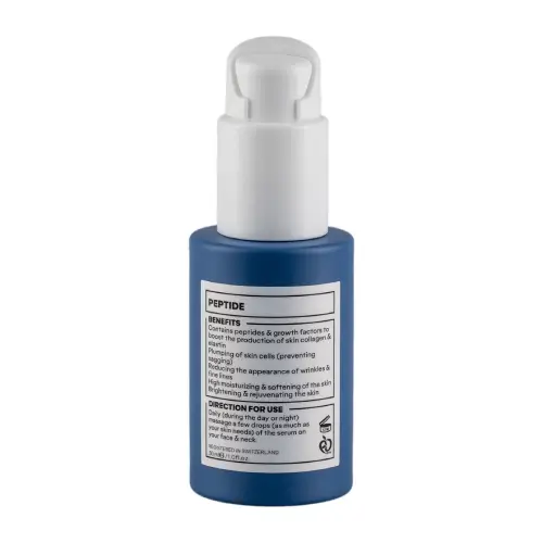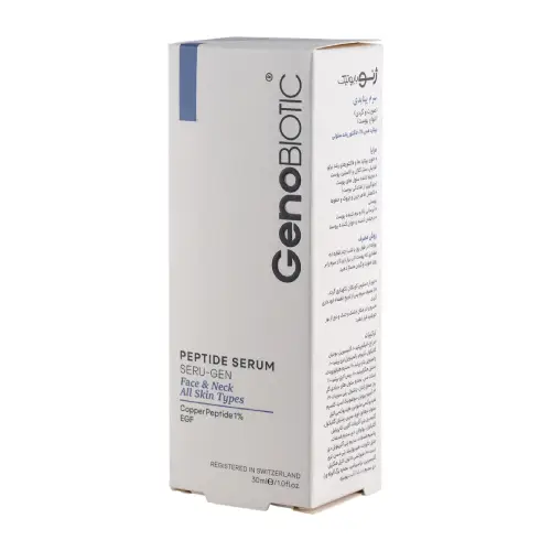 سرم پپتاید ژنوبایوتیک با فرمولاسیونی حاوی پپتایدهای مؤثر، فاکتور رشد اپیدرمی و هیالورونیک اسید به منظور تقویت ساختار پوست، کاهش خطوط، افزایش استحکام و آبرسانی عمیق طراحی شده است.