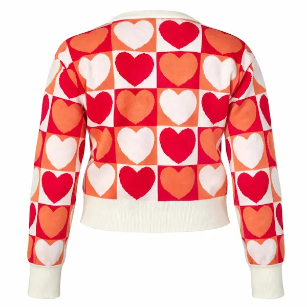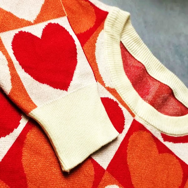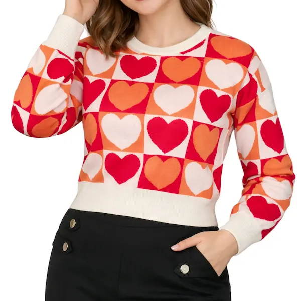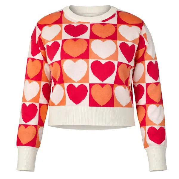 بررسی و خرید بلوز بافت زنانه رنگ نارنجی قرمز سفید مدل heartly