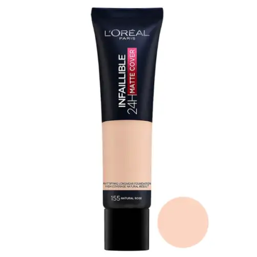 بررسی و خرید کرم پودر مات لورال اینفالیبل 24 ساعته رنگ رز طبیعی شماره 155