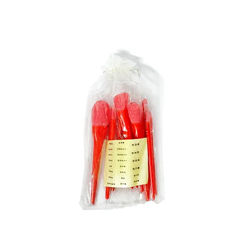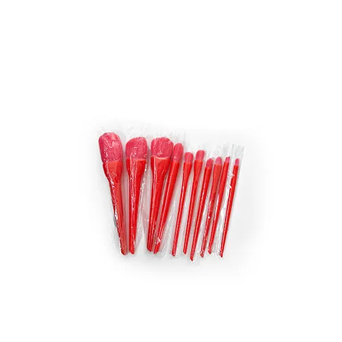 تعداد این براش ده عدد در سایز های مختلف است. جنس دسته های پلاستیک سبک به رنگ قرمز. نوع مو این براش الیاف مصنوعی نرم مناسب برای انواع پوست حتی پوست های حساس است.