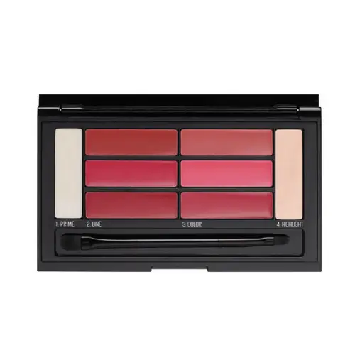 پالت رژلب و کانتور لب میبلین، یک محصول جمعوجور و حرفهای است که ترکیبی از پرایمر، خط لب، رژلب و هایلایتر در یک پالت کوچک با بافت کرمی و مات است که جلوهای حجیم و کاملاً کنترلشده به لبها میدهد.