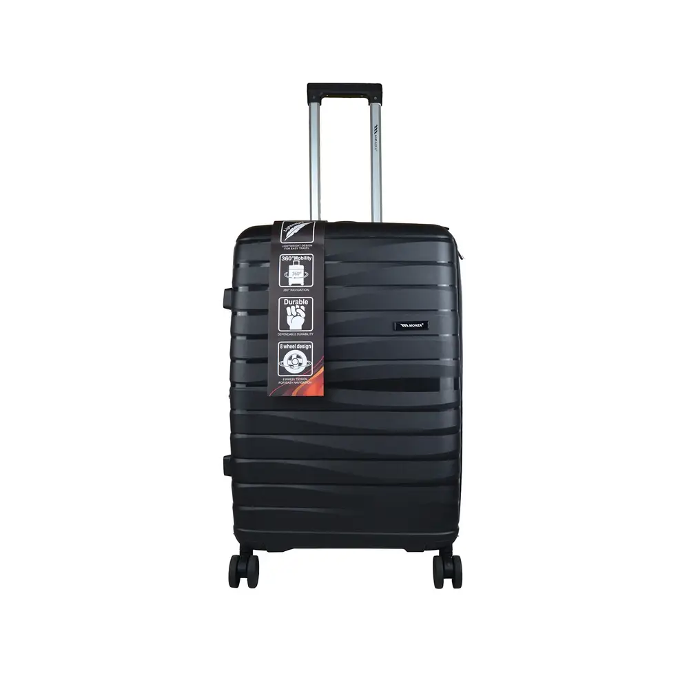 - جنس بدنه: معمولاً از پلیپروپیلن مقاوم و سبک (ویژگی معمول چمدانهای مونزا).