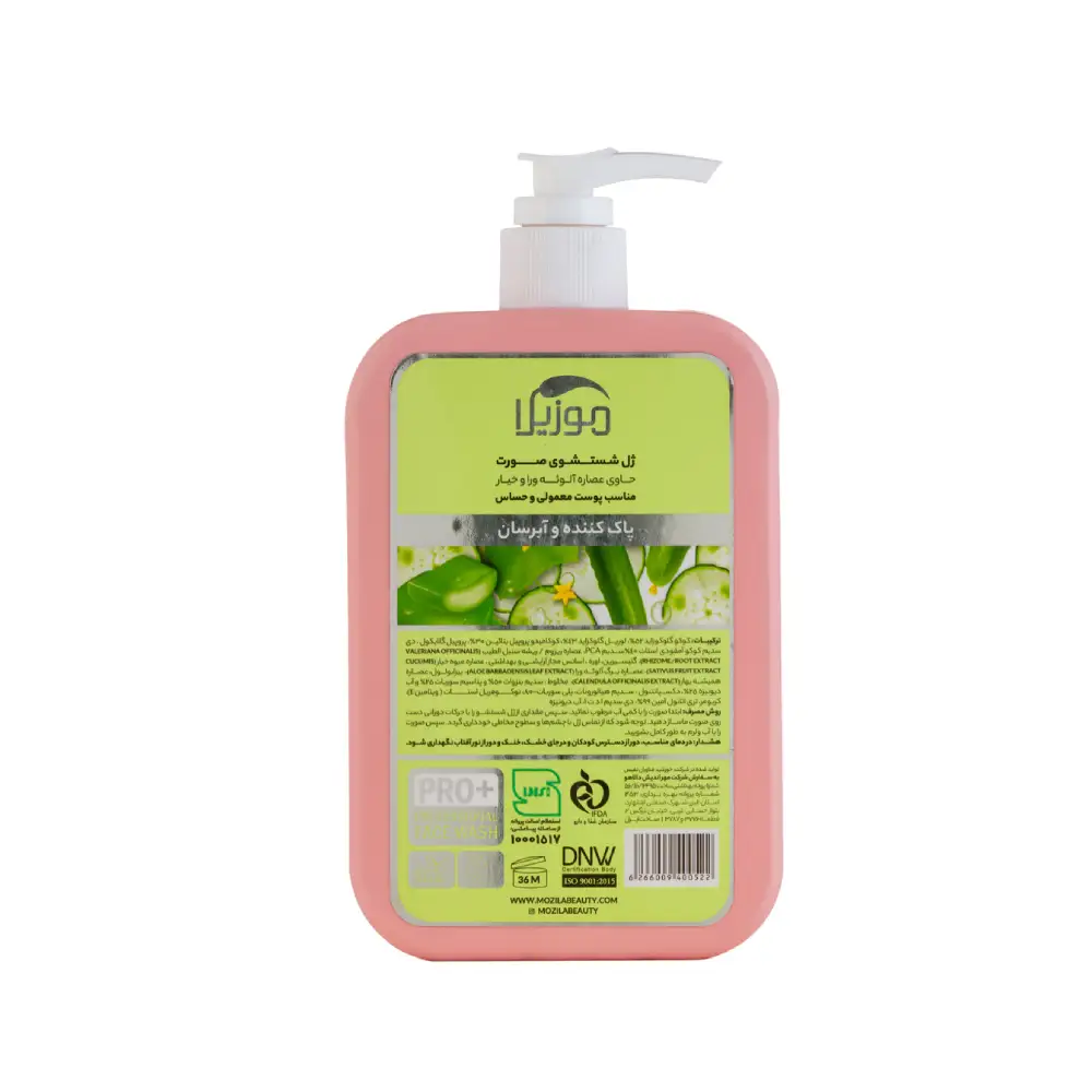 ژل شستشوی صورت موزیلا عصاره آلوئه ورا و خیار پوست حساس و معمولی