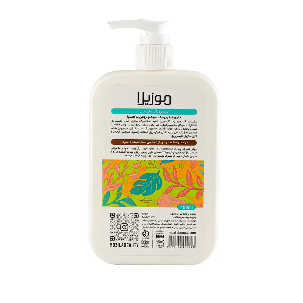 لوسیون بدن آبرسان موزیلا حاوی هیالورونیک اسید و روغن ماکادمیا