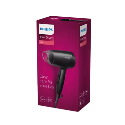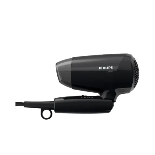 سشوار مسافرتی فیلیپس مدل BHC010 با توان 1200 وات، طراحی جمع و جور و دسته تاشو، خشککردن سریع، ملایم و محافظتشده از موها را در سه سطح حرارت و سرعت، همراه با باد سرد و فناوری ترموپروتک فراهم میکند.