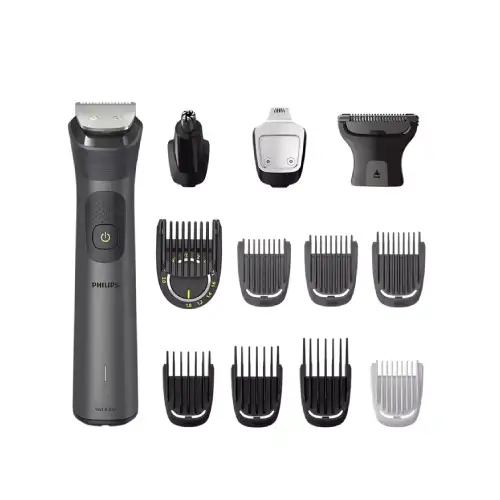 - 13 ابزار متنوع برای اصلاح چندمنظوره شامل ابزارهایی برای صورت، سر، بدن، گوش/بینی، و اصلاح ابرو—تمام آنچه برای اصلاح کامل نیاز دارید.