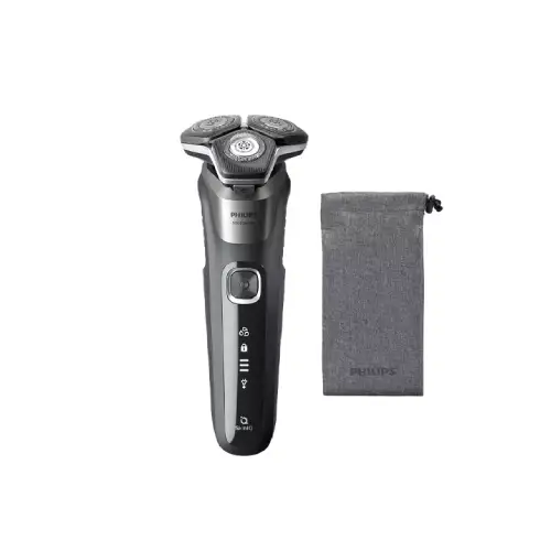 ماشین ریشتراش سری 5000 مدل S5887/10 فیلیپس با فناوری هوشمند SkinIQ و 45 تیغهی SteelPrecision خودتیز، اصلاحی قدرتمند و ملایم ارائه میدهد. هدهای 360 درجه منعطف، نمایشگر LED، و کارکرد بیسیم 60 دقیقه پس از شارژ 1 ساعته (یا شارژ سریع 5 دقیقهای) امکانات برجسته این مدل هستند.