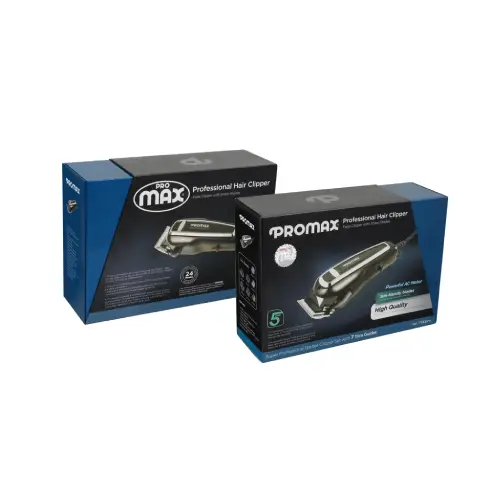ماشین اصلاح سر و صورت پرومکس مدل 1100Pro با تیغههای پهن استیل ضدزنگ، مجهز به پنج درجه تنظیم تیغه و هفت شانه با سایزهای متنوع، همراه با منبع تغذیه برق مستقیم، انتخابی مناسب و دقیق برای استفاده در منزل و آرایشگاه است.