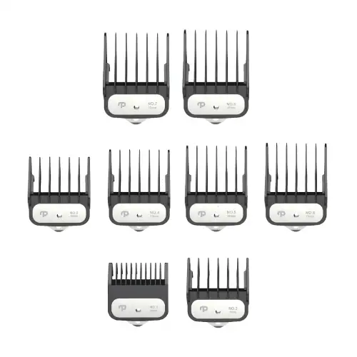 - شانههای متنوع اصلاح: همراه با 8 عدد شانه در سایزهای 3، 6، 10، 12، 16، 19، 22 و 25 میلیمتر برای اصلاح با اندازههای مختلف.