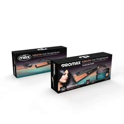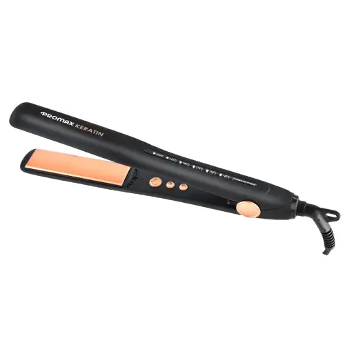 اتو مو حرفهای پرومکس مدل 5757K با صفحات سرامیکی با روکش کراتین، گزینه ای مناسب برای صاف کردن مو و انجام کراتینه در سالن های آرایشی و مصارف خانگی است. این مدل دارای ۶ دمای قابل تنظیم، گرم شدن سریع و نشانگرهای LED برای نمایش دما است.