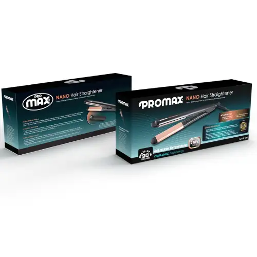 اتو مو نانوسرامیک پرومکس مدل 5610N با صفحات نانوسرامیکی صاف و صیقلی و دمای قابل تنظیم (۱۵۰ تا ۲۱۰ °C)، انتخابی مناسب برای دستیابی به موهای صاف، ابریشمی و کمخطر در استفاده روزمره است.
