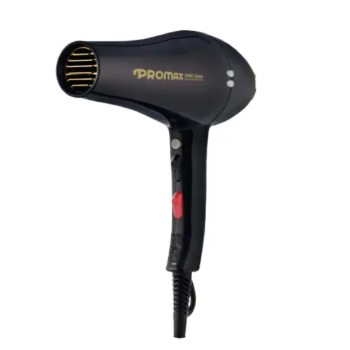 سشوار حرفهای پرومکس مدل 7230R با توان 2300 وات و موتور سنگین AC، باد قوی و فناوری آیونیک دائمی ارائه میکند تا موهای شما سریعتر خشک و درخشان شوند.