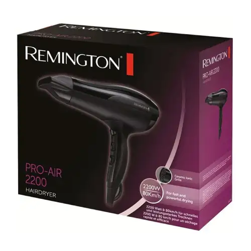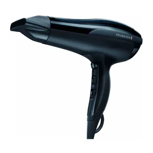 سشوار رمینگتون نیمه حرفه ای مدل D5210 با موتور 2200 وات و فناوری یونیزاسیون، طراحی شده برای خشککردن سریع و حالتدهی به انواع موها با کاهش وز و افزایش درخشندگی.