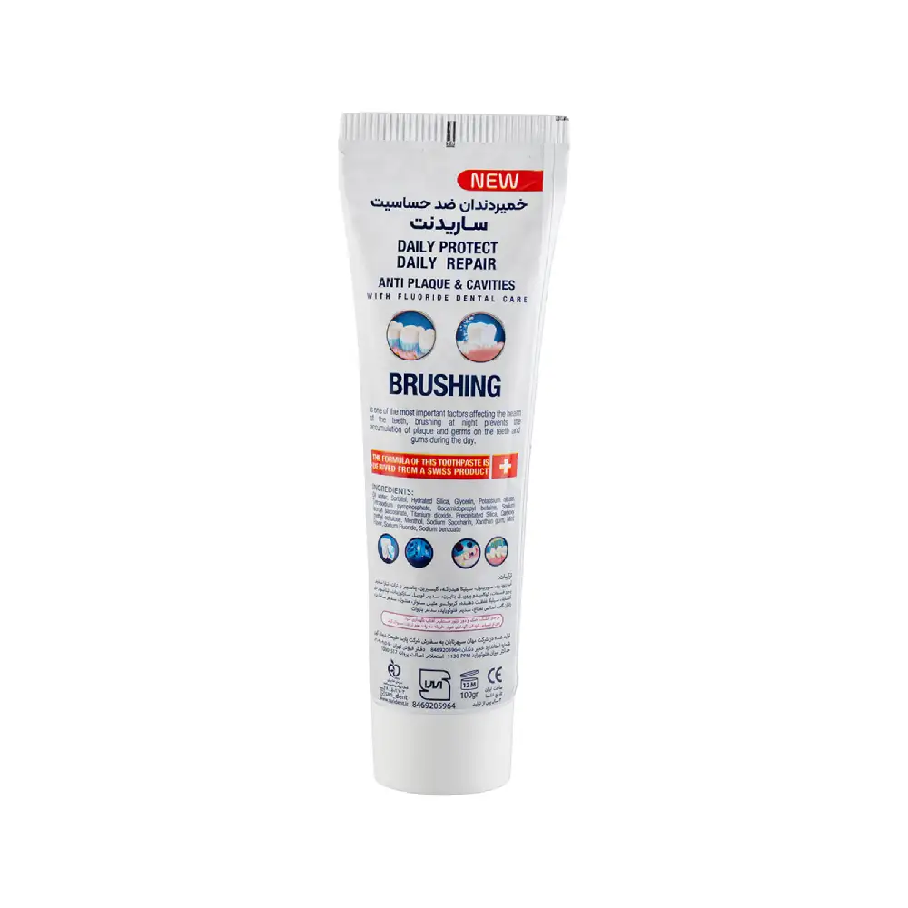 خمیر دندان ساریدنت مدل ضد حساسیت 100 گرم برای کسانی طراحی شده که دندانهایشان نسبت به تغییرات دما یا فشار حساسیت دارد؛ این محصول طوری ساخته شده تا با کاهش تحریک عصبی دندان و حفاظت از مینای آن، مسواک زدن را برای افراد حساس بدون درد و راحتتر کند.