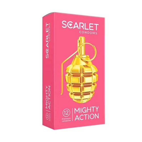 بررسی و خرید کاندوم سفت کننده حجم دهنده اسکارلت 12 عددی MIGHTY ACTION