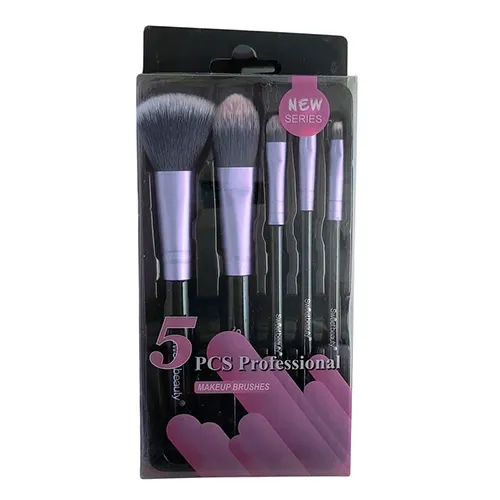 این ست براش آرایشی ۵ تکه است که در سایز های مختلف برای مصارف گوناگون آرایشی کاربرد دارد. طراحی دسته ها به رنگ مشکی و بنفش که ظاهر شیکی به آن ها داده است. الیاف این براش ها نرم و متراکم است که برای پخش کردن یکنواخت مواد آرایشی مناسب است. سایز این براش ها برای حمل روزانه و سفر کاربردی است.