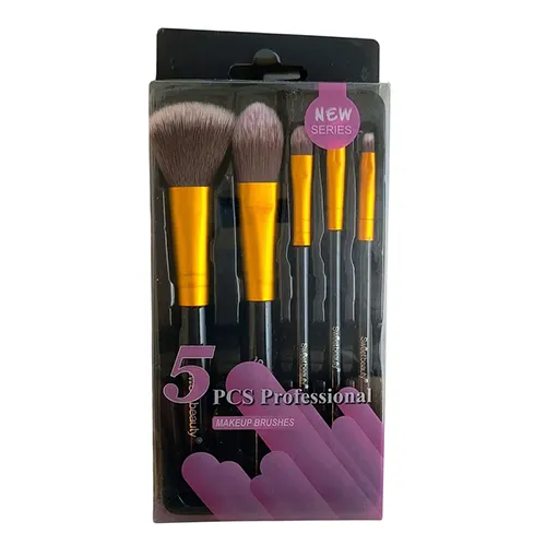 این ست براش آرایشی ۵ تکه است که در سایز های مختلف برای مصارف گوناگون آرایشی کاربرد دارد. طراحی دسته ها به رنگ مشکی و طلایی که ظاهر شیکی به آن ها داده است. الیاف این براش ها نرم و متراکم است که برای پخش کردن یکنواخت مواد آرایشی مناسب است. سایز این براش ها برای حمل روزانه و سفر کاربردی است.