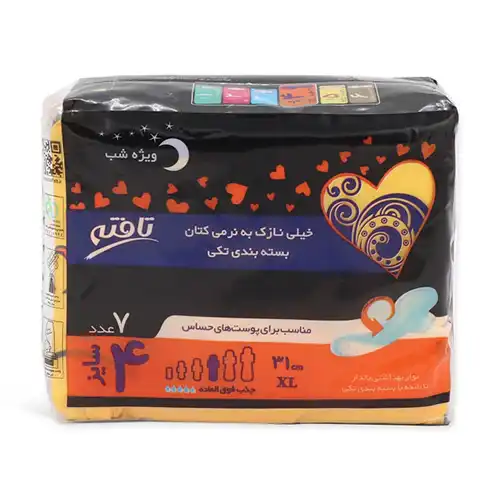 نوار بهداشتی خیلی نازک تافته ویژه شب بسته 7 عددی
