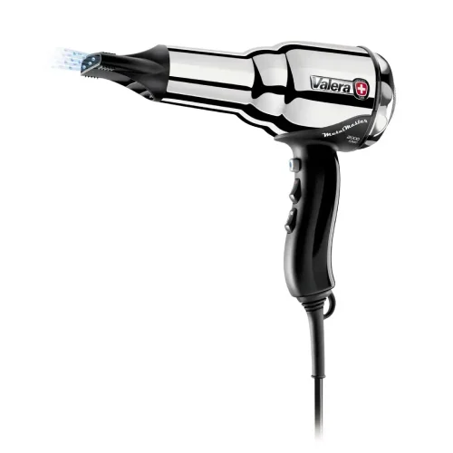 سشوار ولرا سوئیس متال مستر آیونیک مدل 584.02‑I یک سشوار حرفهای با بدنه فلزی کرومی و موتور AC قدرتمند 2000 وات است که با فناوری تولید یون خشککردن سریع، کاهش وز و درخشندگی موها را در سطح حرفهای برای استفاده در سالن و خانه ارائه میدهد. این مدل با طراحی مقاوم و تنظیمات چندگانه، گزینهای مناسب برای افرادی است که به کیفیت بالا و مراقبت بهتر از مو اهمیت میدهند.