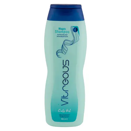 شامپو ویتروس مدل Magro حجم ۴۰۰ میلیلیتر یک شوینده مخصوص موهای چرب است که با کنترل چربی پوست سر و حفظ رطوبت طبیعی، موها را تمیز، ضخیم و درخشان میکند.
